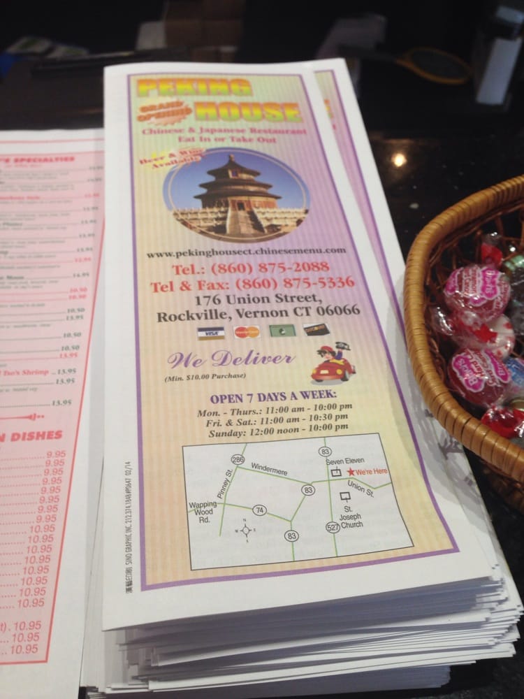 Introducing the menu at Peking House, a gem in Vernon Rockville, CT, offering a fusion of Chinese and Japanese flavors. From appetizers like Shrimp Roll and BBQ Spare Ribs to soups like Wonton Soup and Hot and Sour Soup, the menu is diverse and enticing. Customers rave about the personalized service and attention to detail, making them feel like part of the family. Standout dishes include the Beef on a Stick from the Sushi Bar and classic favorites like Sesame Chicken and Egg Rolls. With convenient options like delivery and takeout, Peking House is a top choice for delicious and satisfying Chinese cuisine. Treat your taste buds and experience the exceptional flavors at Peking House.
